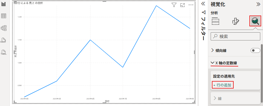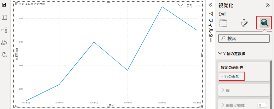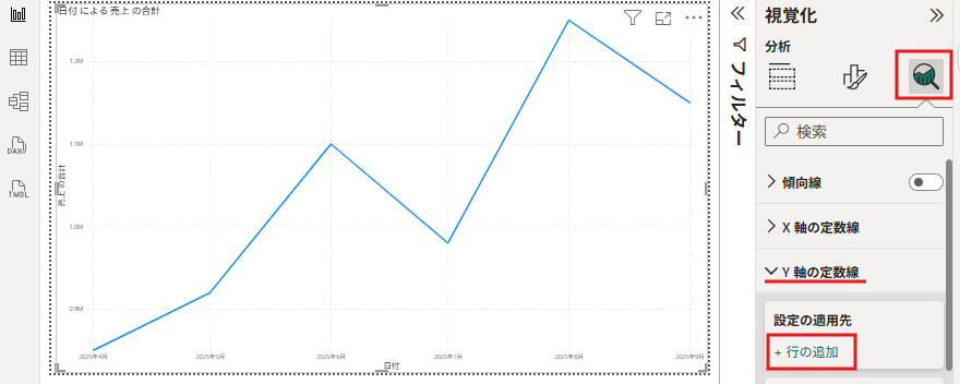 Power BIでグラフを作っていると、「目標値のラインを入れたい」「特定の日付に縦線を引きたい」と思うことはありませんか?