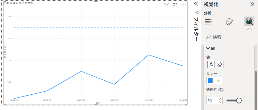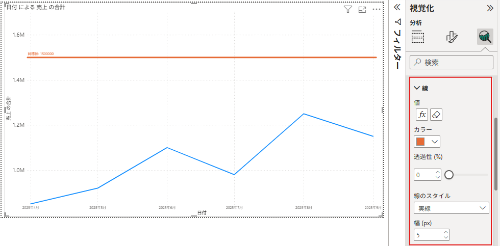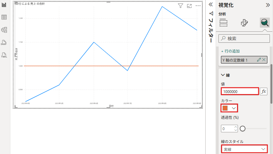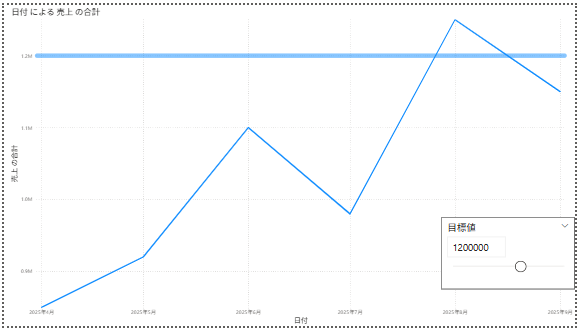 実は、Power BIでは「定数線」や「縦線」を簡単に追加でき、さらに動的設定をすればより柔軟にコントロールすることも可能です。