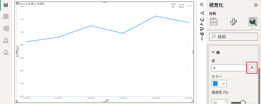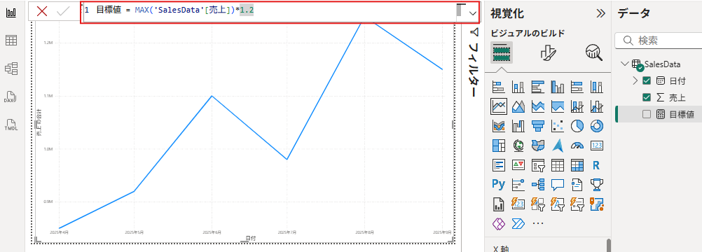 次にDAXメジャーを使った変数を用いて線の値を動的設定する方法を紹介します。