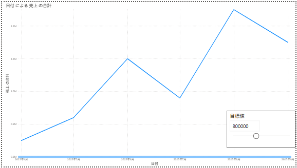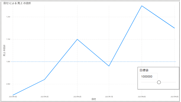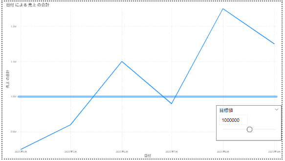 今までと同様のデータを用いて、目標線が0~200万の間で可変できる設定をしてみます。